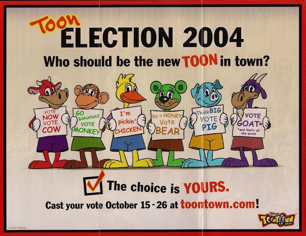 As a species, cows have lots of history in Toontown. They were one of the species included in the first species vote, along with Goats, Chickens, Bears, Monkeys, and Pigs, back in 2004!